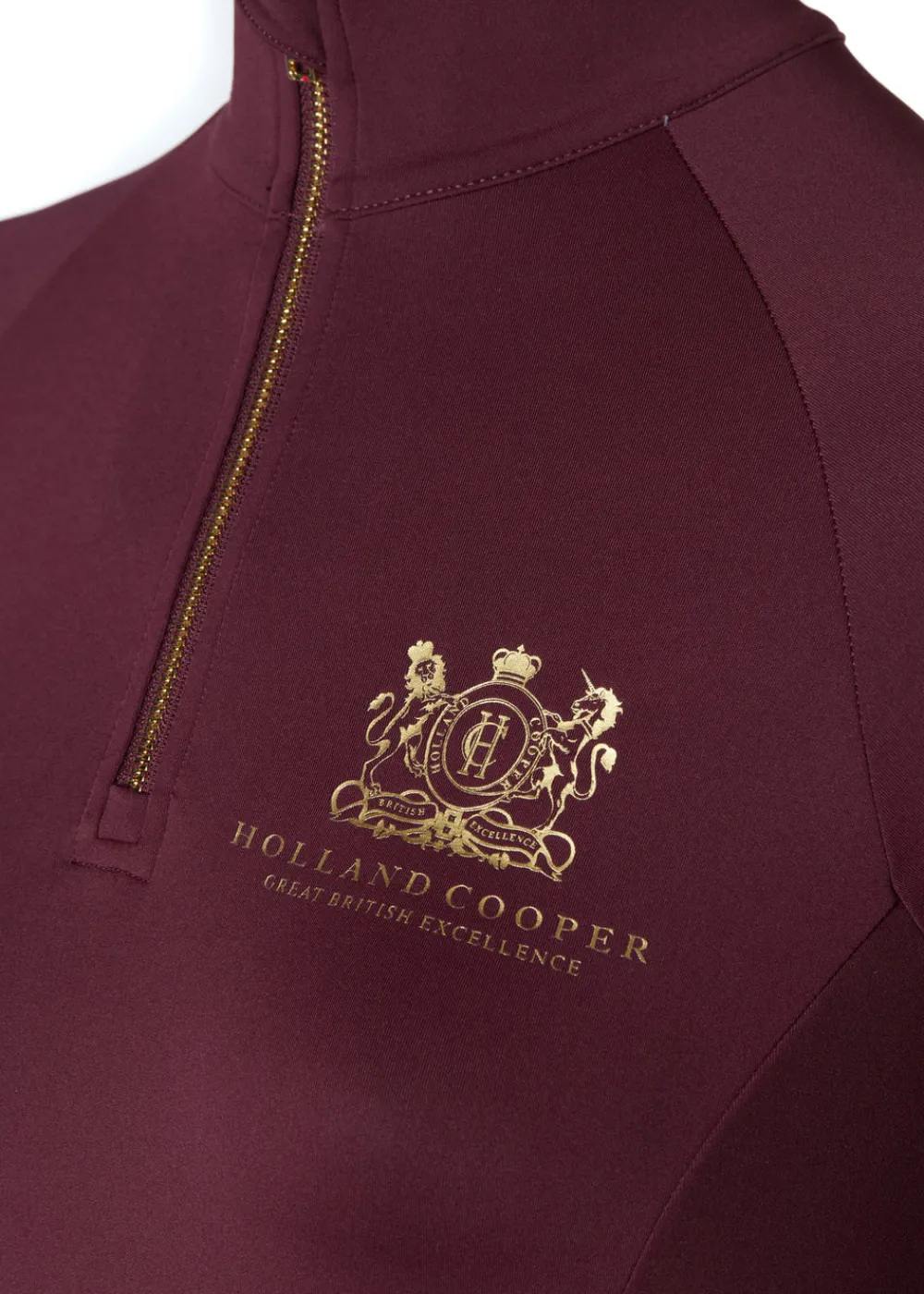 Our technical riding tops are expertly crafted with practicality and form in mind, our base layer offers warmth and comfort hand in hand. Perfect for keeping cool in whilst training while providing an insulating layer during the winter. Crafted from a comfort stretch fabric for ease of movement. Detailed with our signature gold hardware.