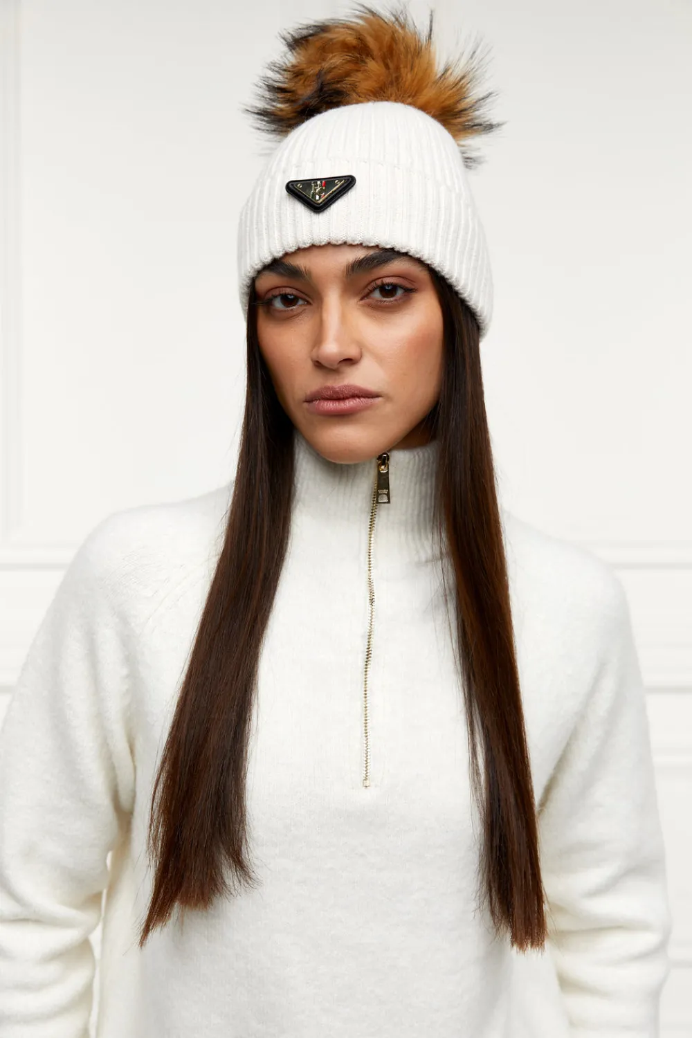 Created from delicate & subtle yarns, this knitted hat has been beautifully designed with a luxurious detachable bobble crafted from faux fur. With a sophisticated ribbed texture & detailed with our new gold & enamel trims, this hat is essential for every rider.