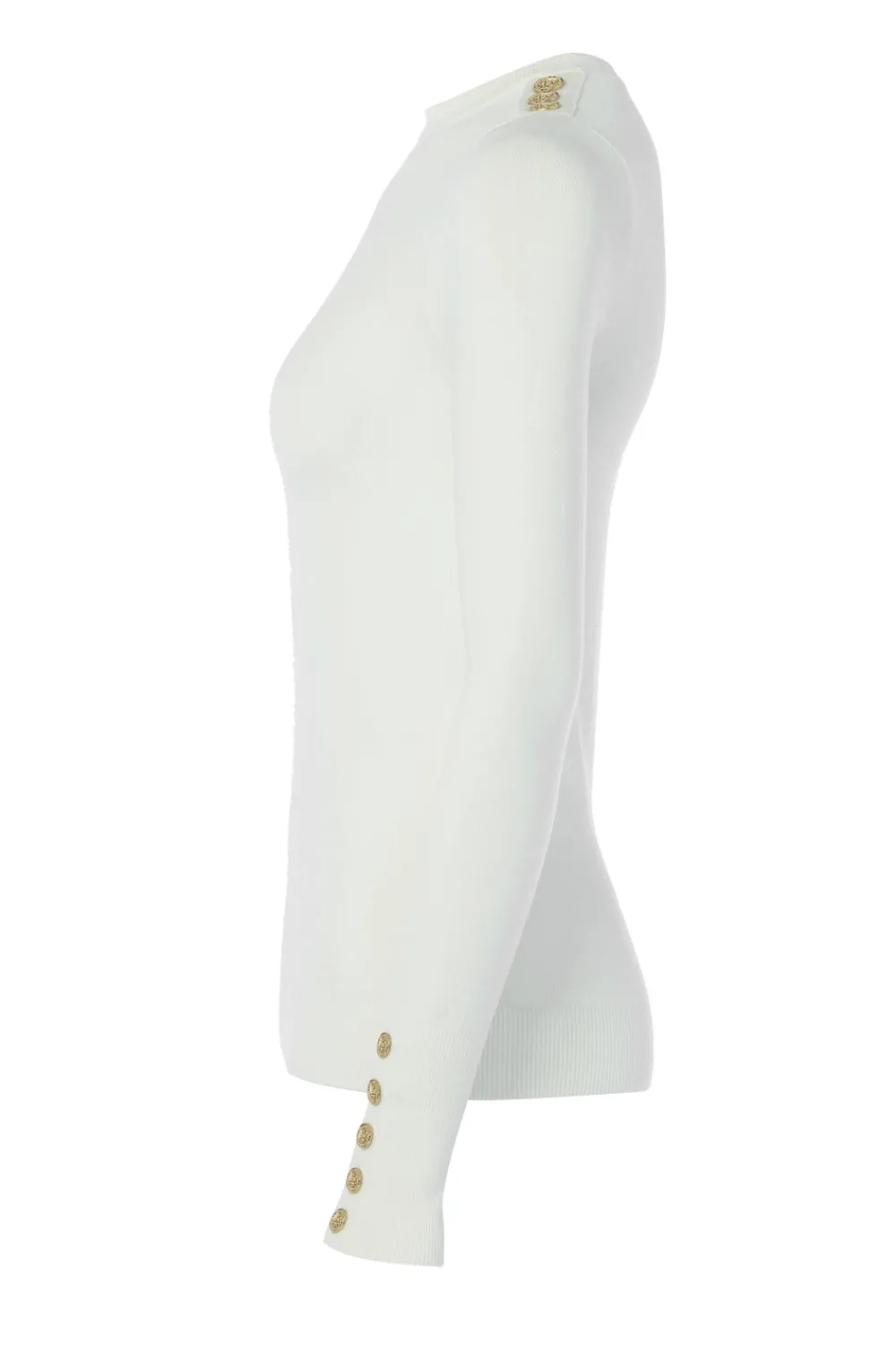 Introducing HC’s update to the buttoned knit crew neck, now with our signature hardware on both shoulders, to form part of your signature look. Complete every outfit with this stylish, classic and easy to wear wardrobe staple.