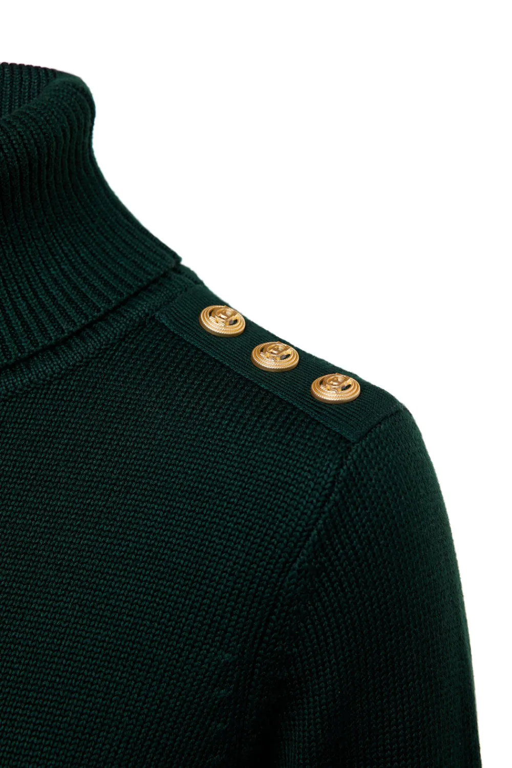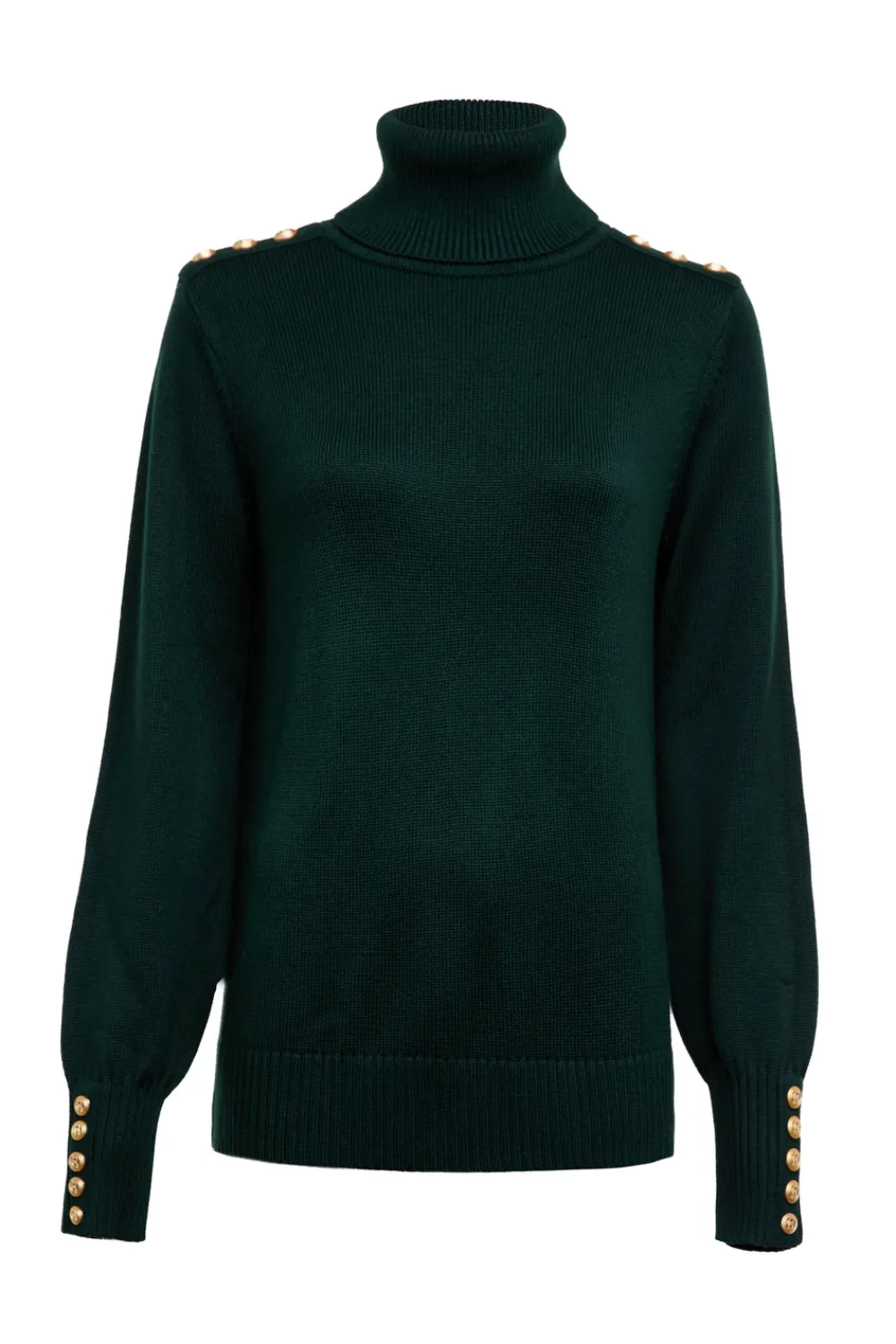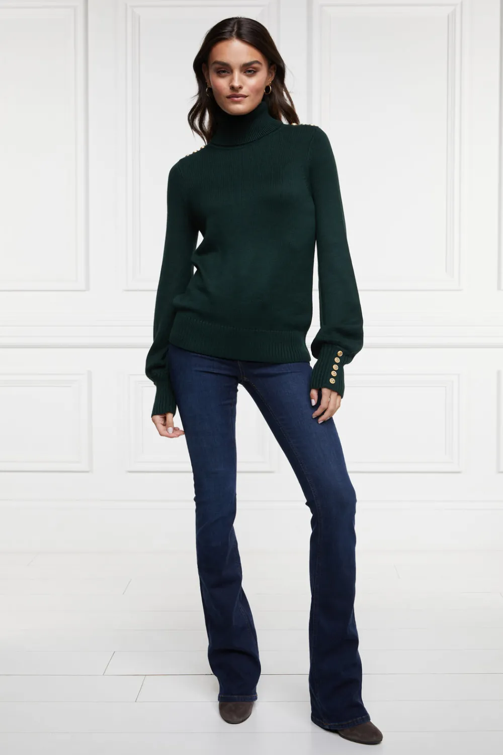This classic roll-neck knit has been beautifully elevated with subtly fluted sleeves for a soft and elegant look. Made from a luxuriously soft yarn, this knit has been designed with a longer body which is perfect for tucking into jeans. Detailed with our iconic gold HC rivets on the shoulder and cuff.