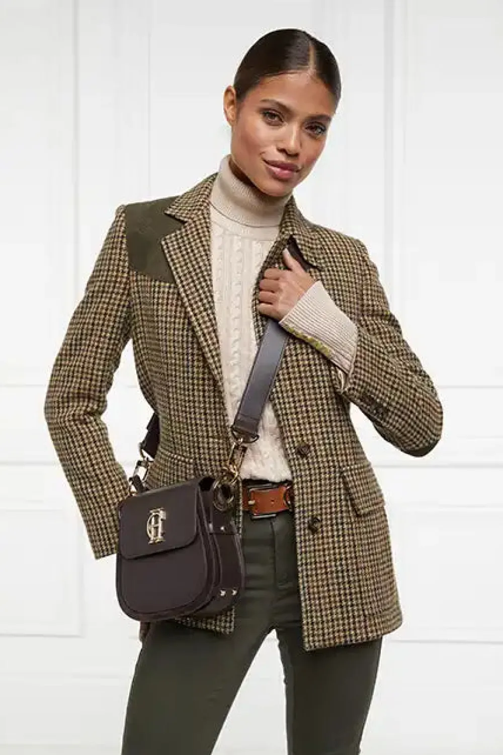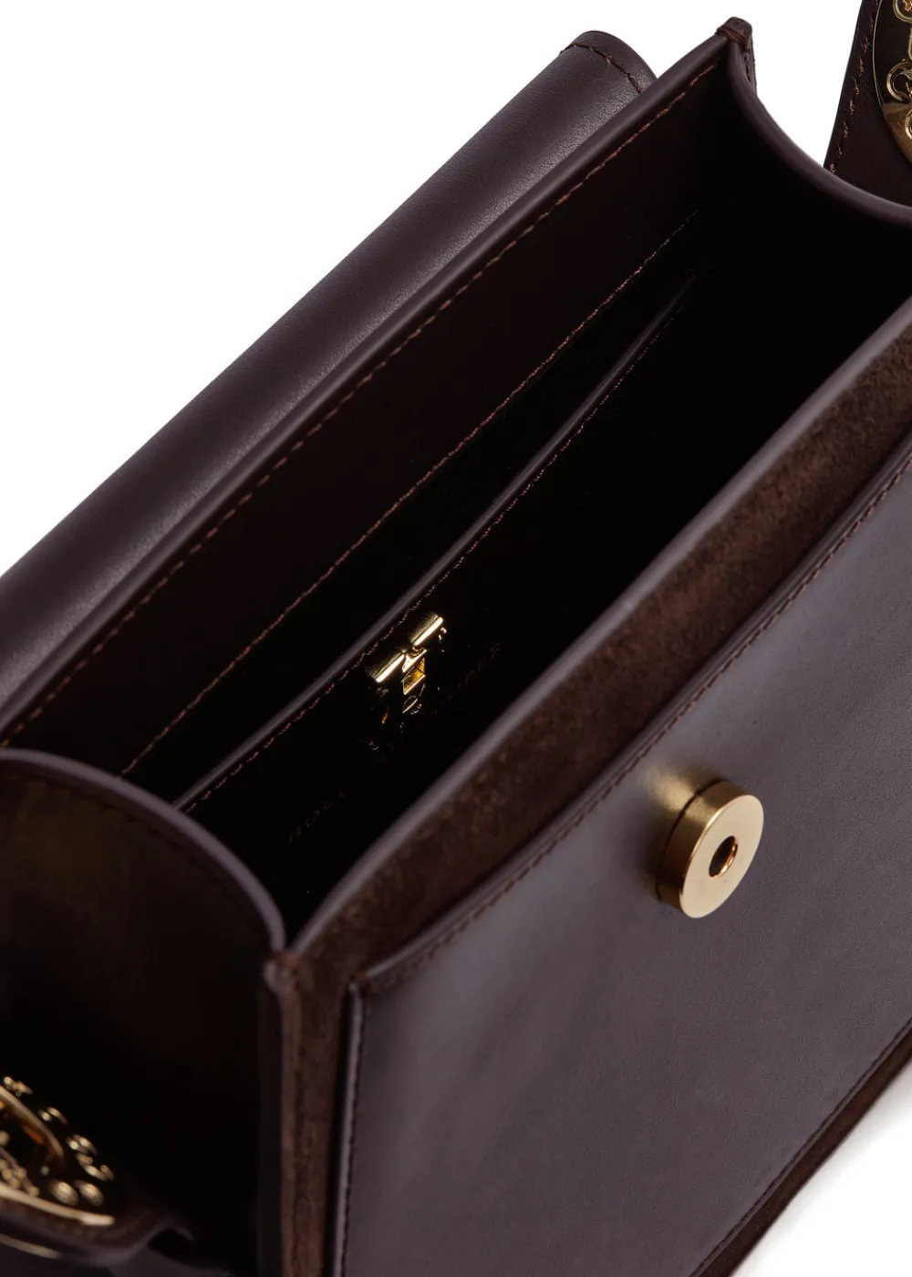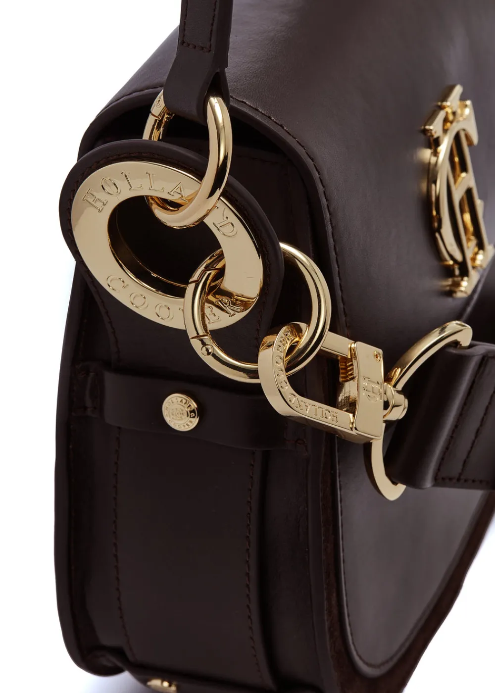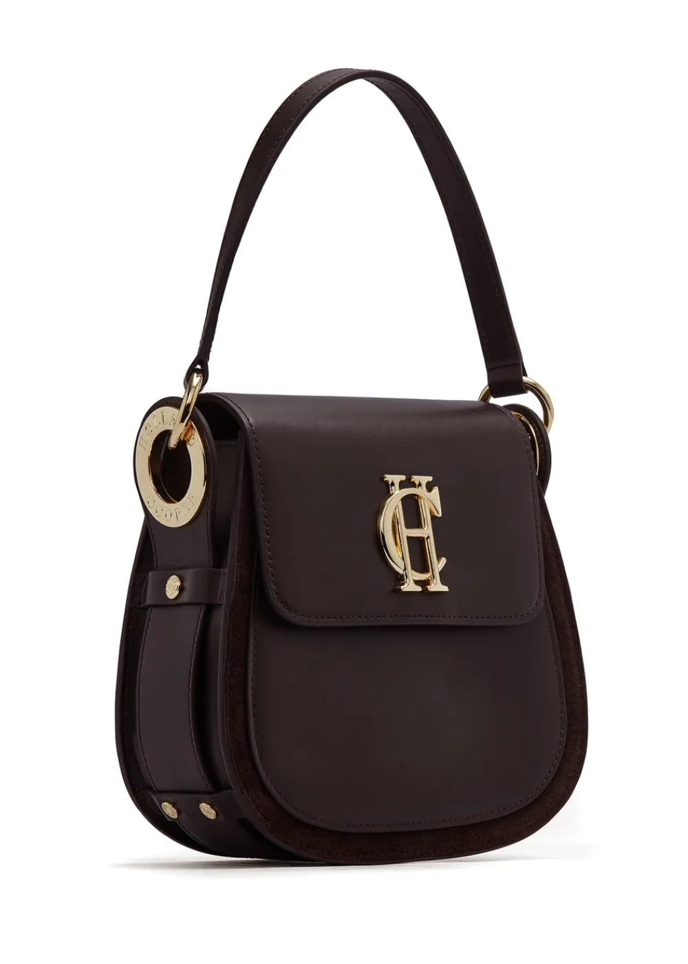 Crafted from an elegant combination of suede and leather, this bag has been designed with a feminine, curved structure. With a spacious interior, ideal for your everyday essentials, the sleek front flap is secured with a magnetic closure to keep your valuables safe. With a chunky top handle and adjustable shoulder strap, this bag has been designed to be worn in multiple ways. Elevated with our iconic gold hardware, HC plaque and gold embellishment.