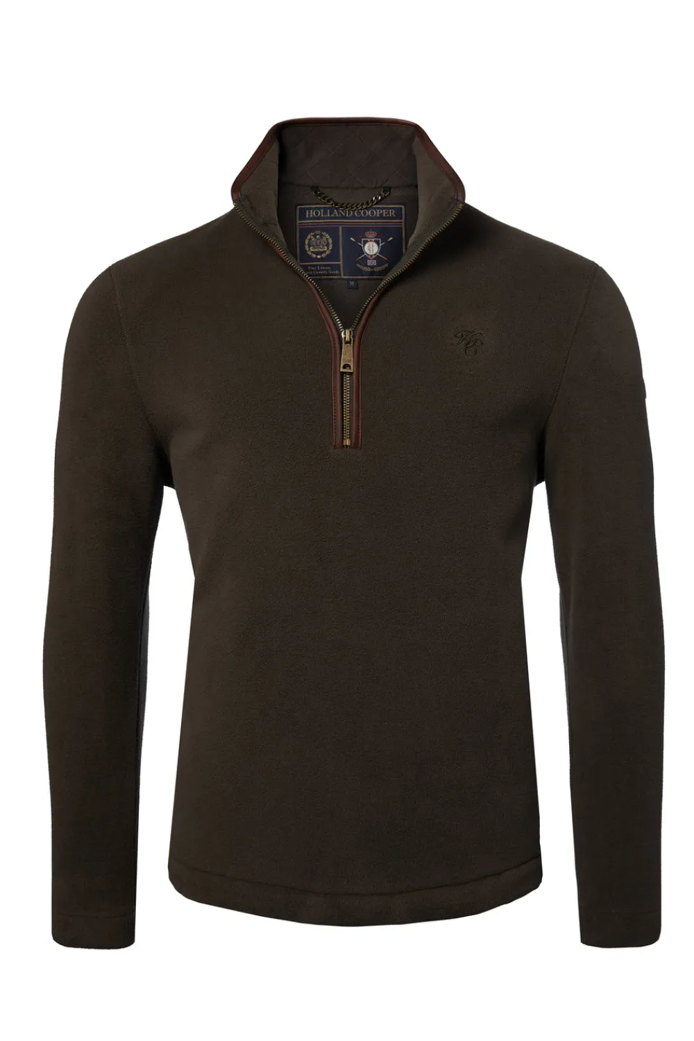 Expertly crafted from technical polar fleece fabric with a half centre zip, this piece has been designed to layer and ensure style on the coldest of days. Detailed with faux leather piping and subtle HC embroidery to the chest, the hidden seamed pockets ensure a smooth and clean fit when worn. Elevated with our iconic antique brass fastenings and metal hardware to finish the look. Layer under our Cheltenham Coat for a classic and British look.