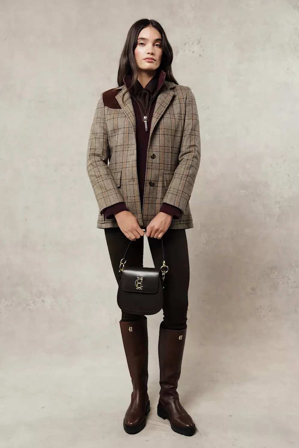 Detailed with faux leather piping and subtle HC embroidery to the chest, the hidden seamed pockets ensure a smooth and clean fit when worn. Elevated with contrasting embroidered back yolk and fleece elbow patches. Finished with our iconic antique brass fastenings and metal hardware.