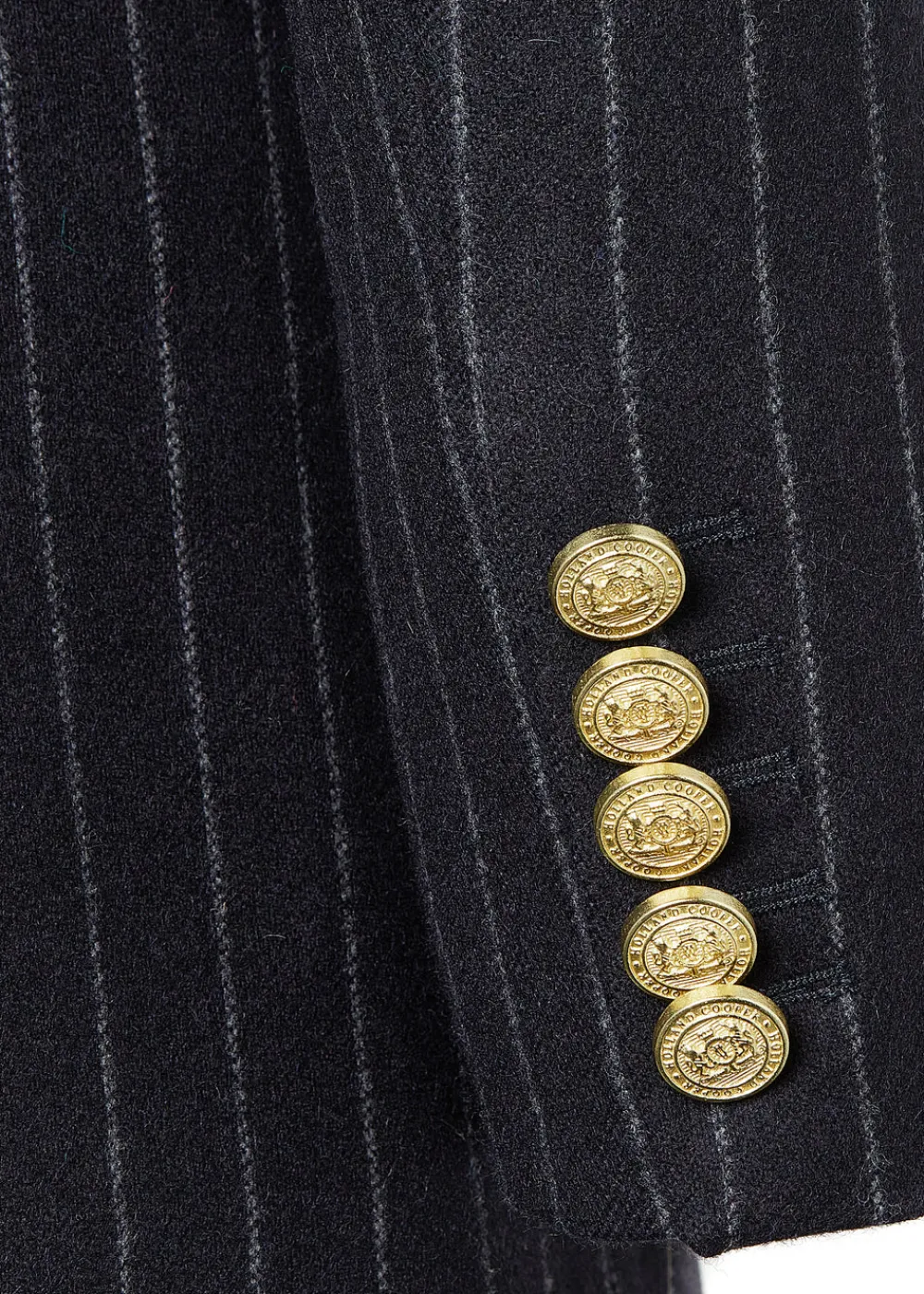 Designed to create a sharp tailored silhouette worn open or closed, the Double Breasted wool Blazer has been handmade in the UK. Crafted from a classic and contemporary pinstripe fabric & fully lined with a luxury stretch lining for extra comfort, this piece is a must-have staple for your wardrobe. With bold lapels & subtle hip pockets, each blazer has been elevated with HC signature gold hardware to the front and cuffs.