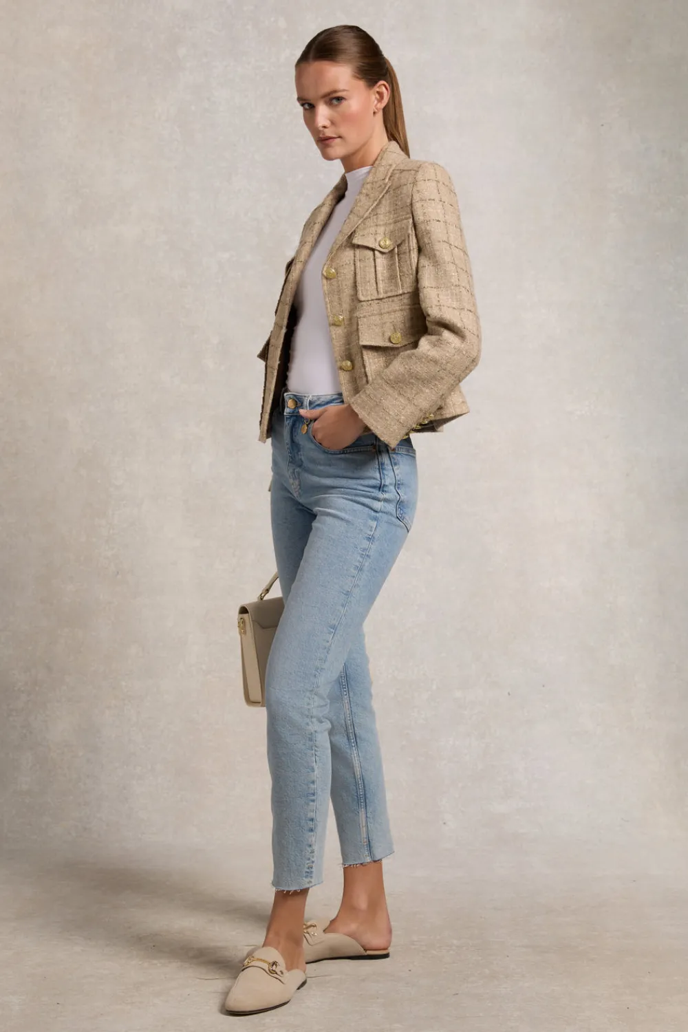 This capped sleeve bodysuit is a timeless classic. It gives you a sculpted tucked in look with a high neckline and light padding on the shoulder, featuring our signature HC gold hardware. Designed with a second skin feel, this soft stretch bodysuit has a flattering thong brief that will remain undetectable beneath close fitting tailoring or skirts. -