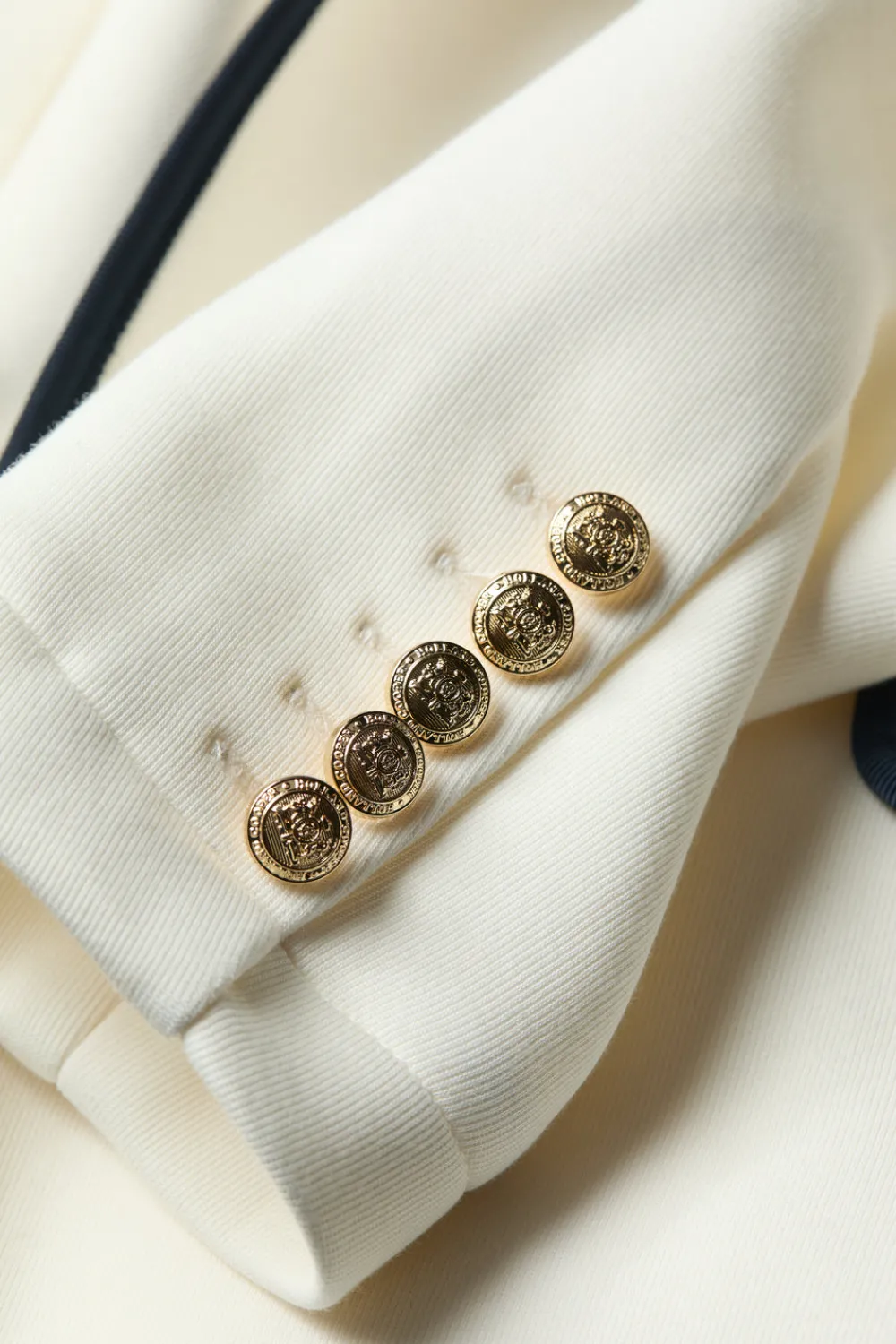 Designed with a tailored silhouette, the double breasted Henley Blazer has been designed with an elegantly slim fit and vintage-inspired aesthetic. Created from a heavyweight knitted shell fabric, this blazer has been beautifully characterised by our iconic handmade HC badge on the chest pocket. With an elegant four-button closure, the traditional piping adds a preppy and chic touch. Detailed with patch pockets and buttoned cuffs.