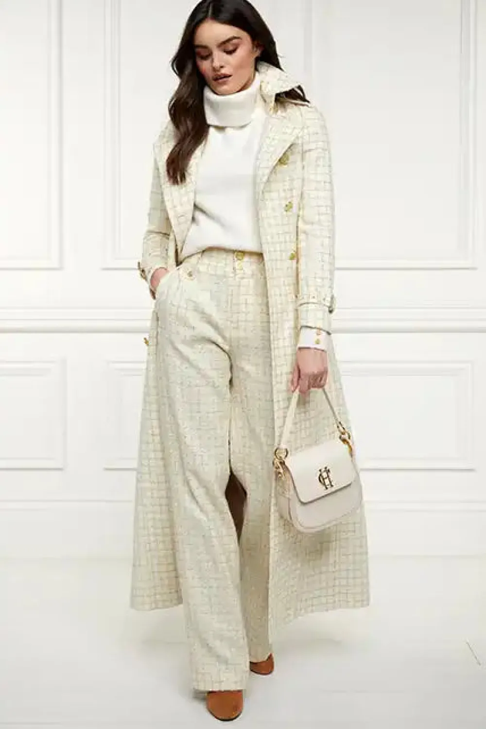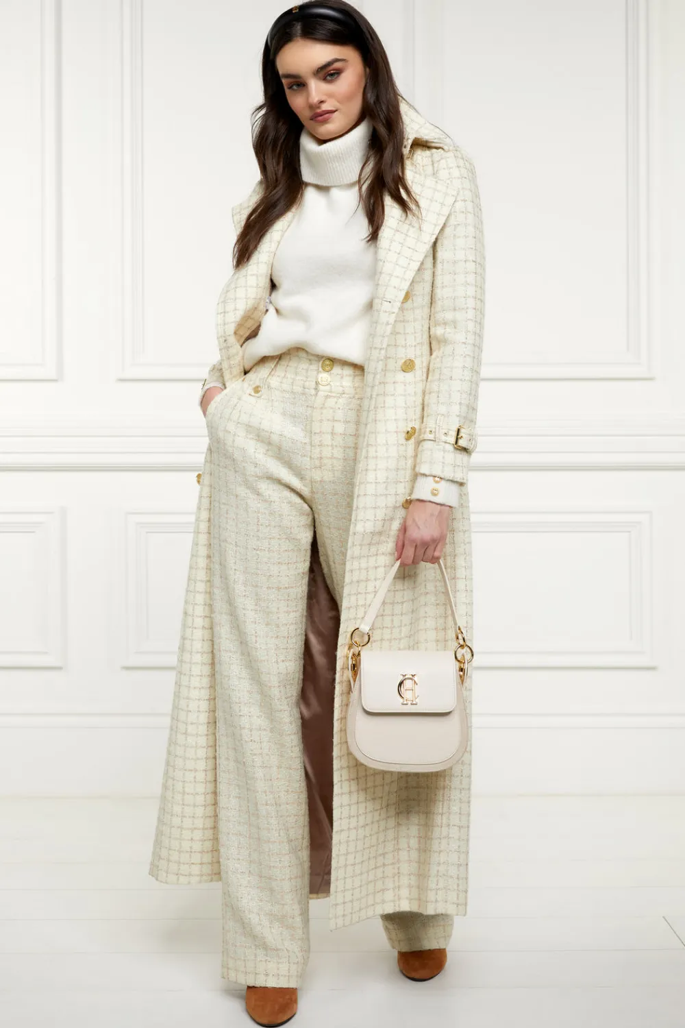 Simple and refined, these straight-leg trousers are the perfect balance of smart and casual that effortlessly take you from day to night. Made from a luxurious wool blend that’s fully lined, these trousers sit high on the waist with a wide waistband to create a flattering silhouette that suits all body shapes. Featuring two large side pockets and adorned with our iconic gold hardware for an added touch of luxury. These trousers have been hand cut and made in England using wool woven in the UK.