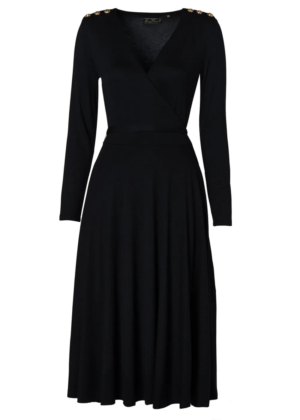 Made from sumptuously soft fabric, this dress features a double-layered design for a flattering silhouette. The wrap-across top body pairs seamlessly with a fit-and-flare skirt, creating a feminine and elegant look. With an elasticated waist for added comfort, it offers both style and ease of wear.