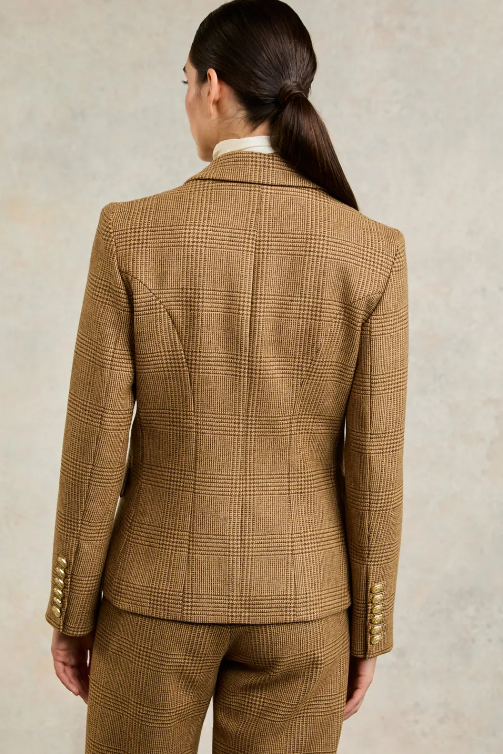 Made from wools woven in the UK, this blazer has a slim, double-breasted silhouette featuring HC’s signature crested rivets. Precisely tailored to ensure a sharp and tailored profile worn open or closed, each blazer has been fully lined with a luxury stretch lining for comfort. Elevated by bold lapels and subtly placed hip pockets, this wardrobe staple has been hand cut and made entirely in England.
