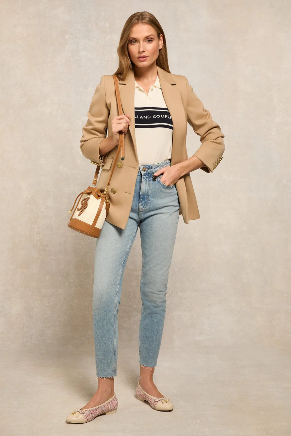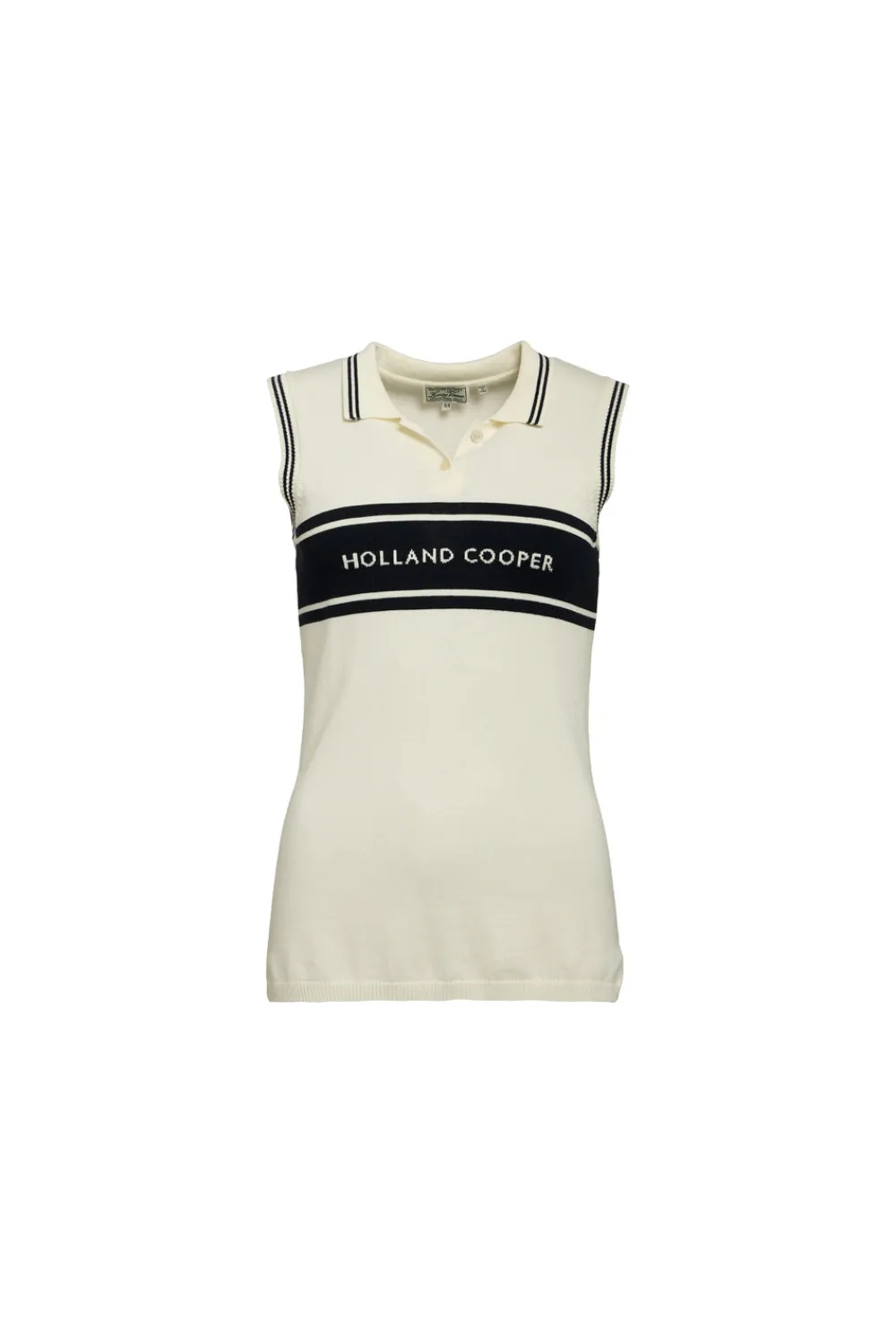 The Layla Sleeveless Knitted Polo epitomises understated elegance. Presented in a natural hue, this slim-fitting polo is designed for a sleek, contoured silhouette. The chest panel features a subtle HC jacquard in a contrasting tone, adding a touch of refined sophistication. The design is completed with branded shell buttons and delicate tipping on the collar, enhancing its classic polo style.