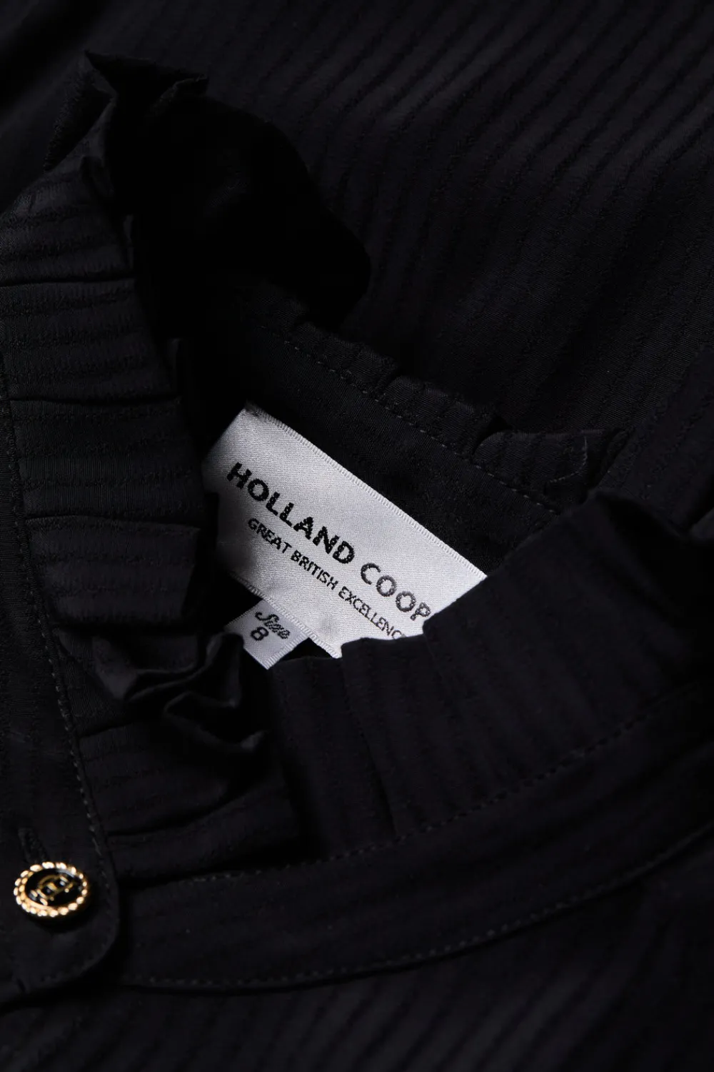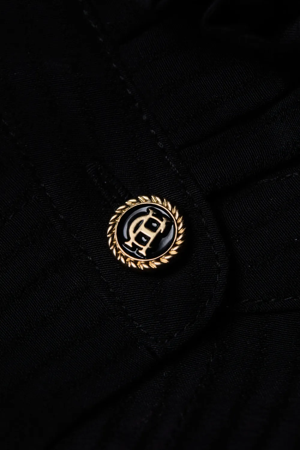 - Gold button closure