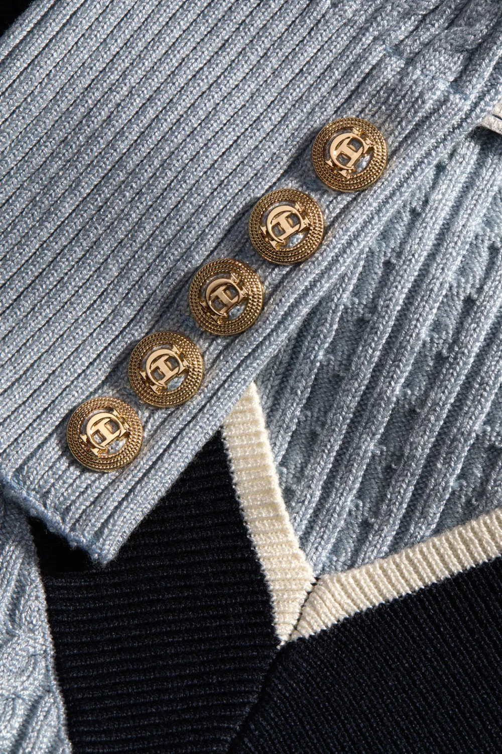This exquisitely crafted piece features a delicate contrast rib design and intricate cabling throughout the body, offering a touch of classic sophistication. Adorned with the signature HC embroidery on the chest, this slim-fit knit is woven from a luxurious blend, ensuring both softness and durability. Perfect for layering or as a standalone statement piece.