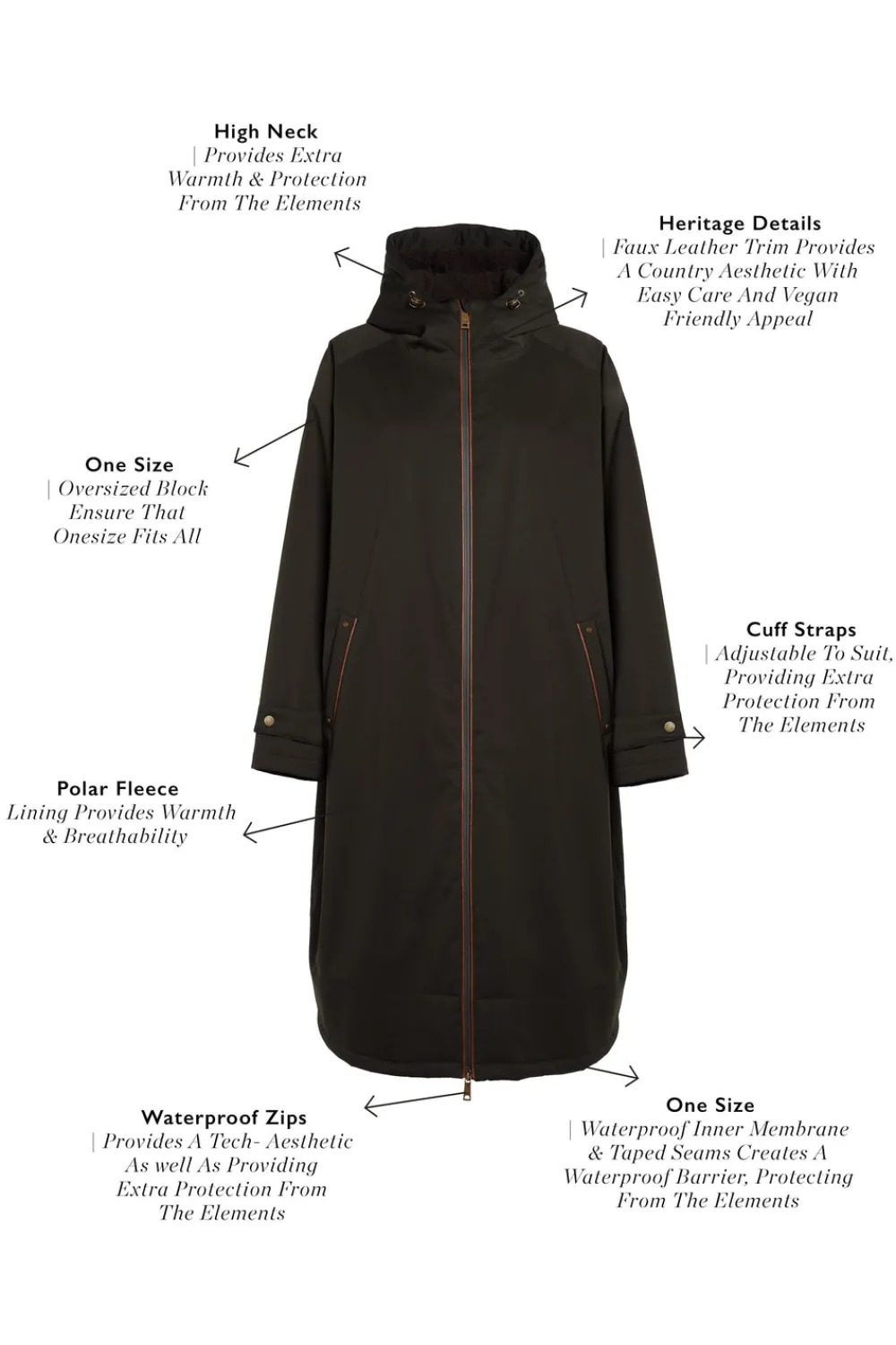 A must-have for the discerning adventurer, this super oversized coat boasts over-knee length for maximum coverage, ensuring you stay stylish and protected in any weather. Crafted with a waterproof outer shell fabric and fully taped waterproof seams, the full zip closure and cuff adjustment provides both functionality and versatility. With a borg lined hood with welt pockets to the front, the faux leather piping enhances this practical piece.