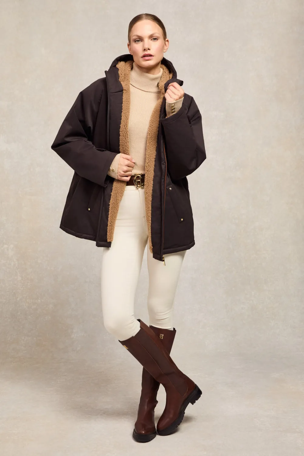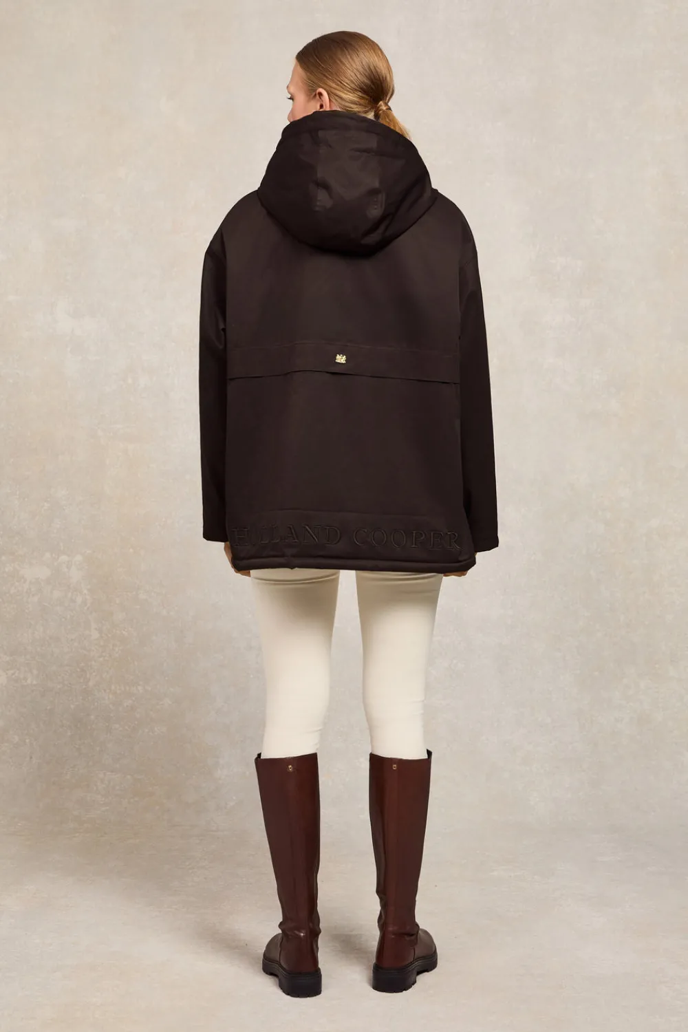 Our iconic one-size waterproof coats have been reimagined this season in a versatile jacket style, perfect for those seeking a more compact silhouette without sacrificing performance. Combining timeless design with modern functionality, this jacket features a waterproof outer shell and fully taped seams, ensuring you stay dry in any weather. Thoughtful details like the borg-lined hood, adjustable cuffs, and front welt pockets deliver comfort and practicality, while the faux leather piping adds a refined finish.