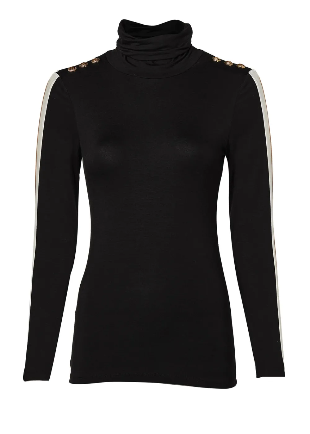 Crafted from superior knitted viscose for a luxurious feel, this roll neck has been designed to become an elevated building block in every womans wardrobe. Adorned with HC crested rivets on the shoulders, it exudes sophistication. The super soft fabric ensures comfort and warmth, while the contrast panel running down the sleeve adds a touch of modern flair.