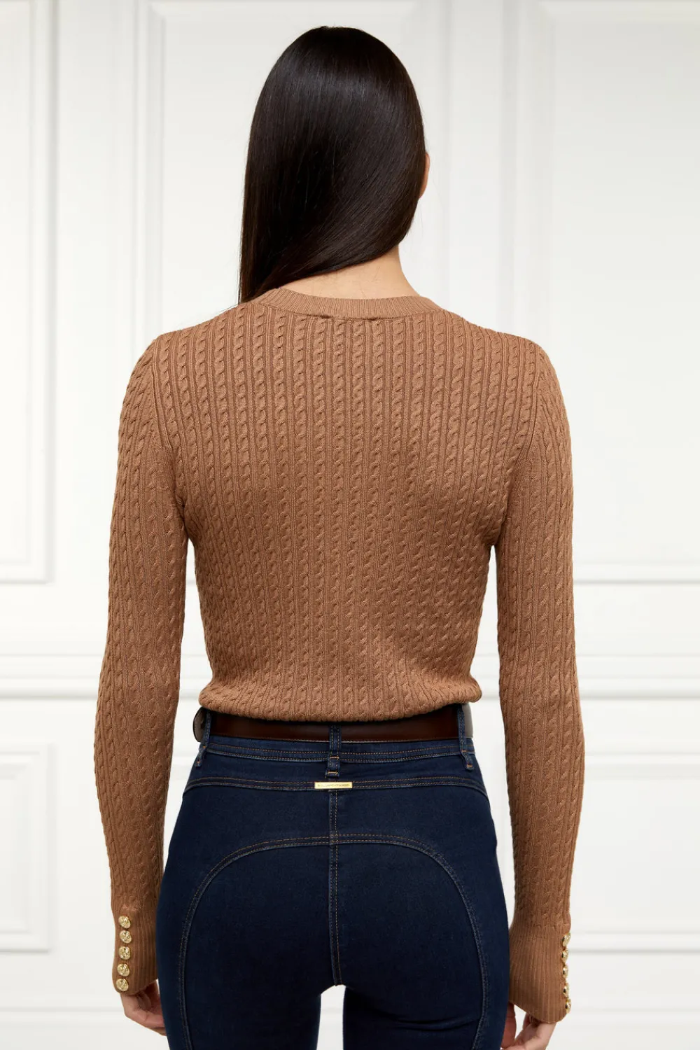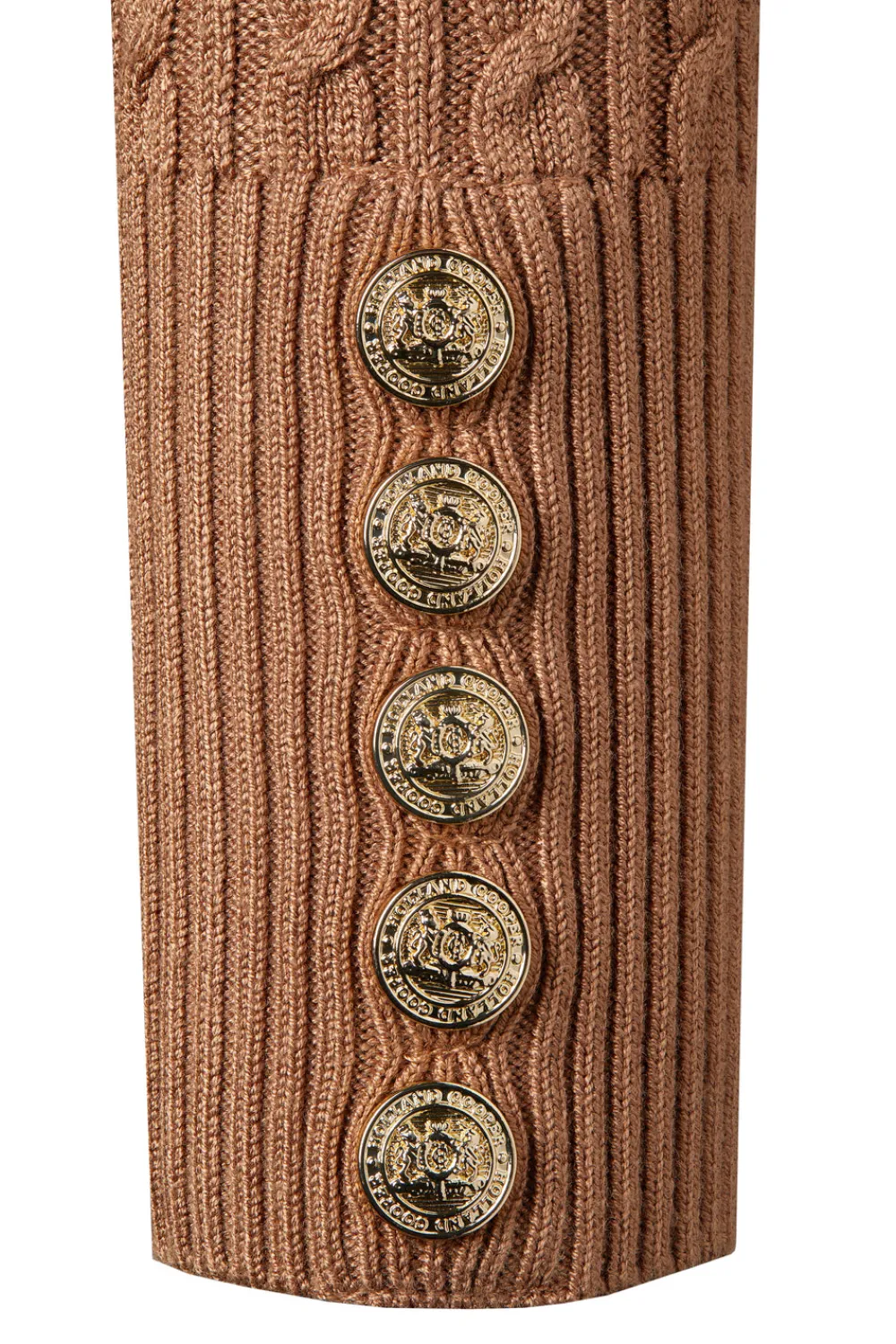 The exquisite cable design adds a touch of classic sophistication, while the slim fit through the body flatters your silhouette, offering a modern yet refined look.