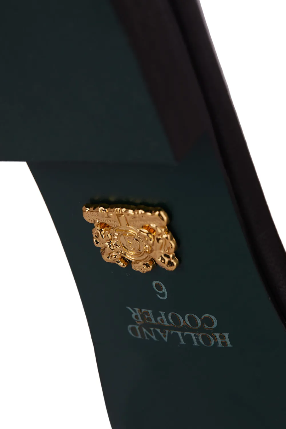 Embodying timeless sophistication, the Regency Slingback seamlessly merges classic design with contemporary elegance. This refined pointed-toe silhouette features a luxurious textured contrast upper in nude and black, creating a versatile statement piece for your wardrobe. The thoughtfully designed elasticated ankle strap, adorned with signature gold HC hardware, ensures both comfort and distinction. Crafted with a leather-padded footbed for exceptional comfort and finished with our distinctive green lacquer outsole.
