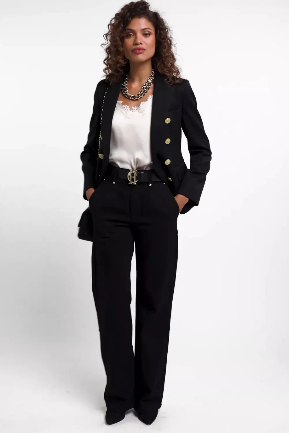 Introducing our beautifully lustrous V-neck cami, adorned with delicate lace trim along the neckline and adjustable spaghetti straps for a perfect fit. Detailed with our signature HC engraved buttons, this cami is now crafted in an easy-care satin fabric for added convenience.