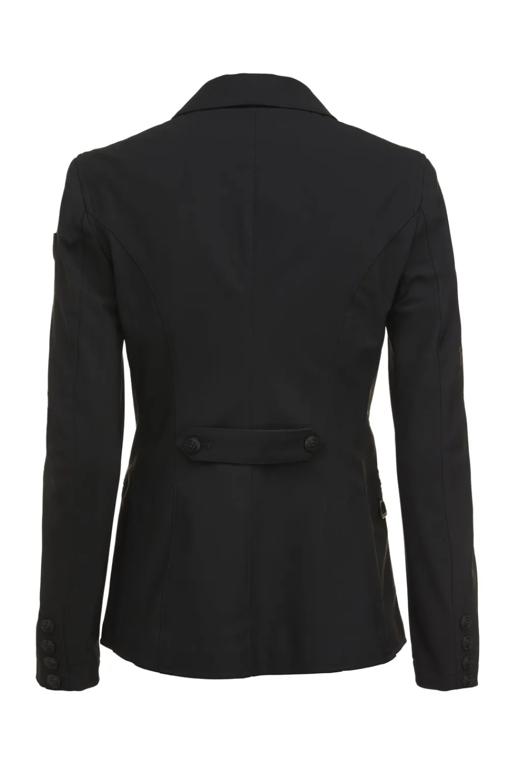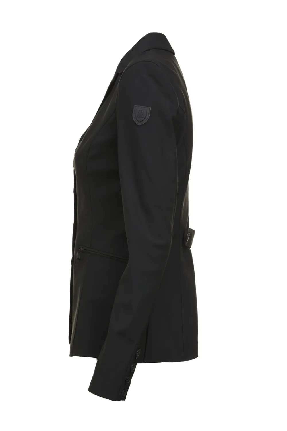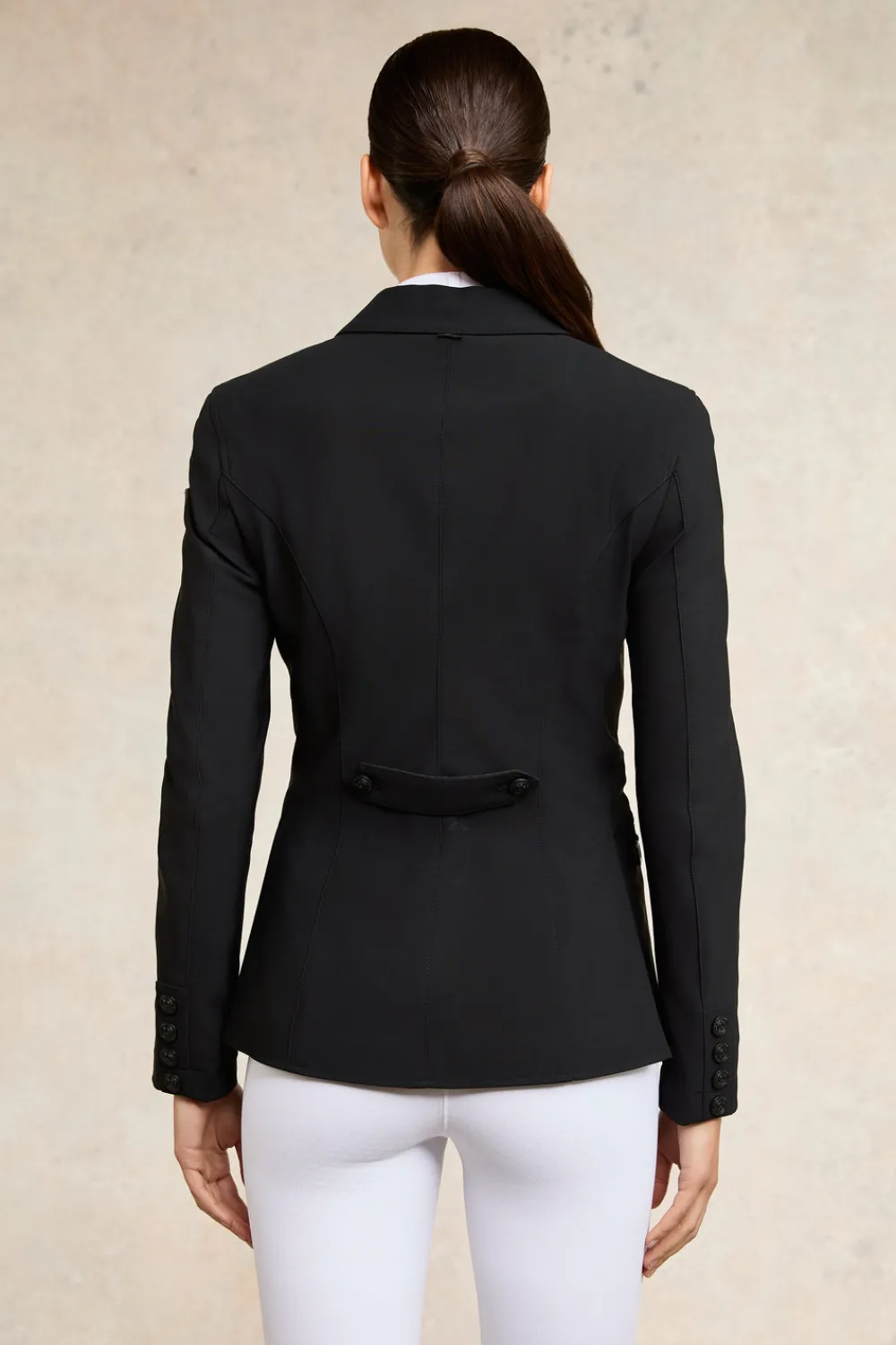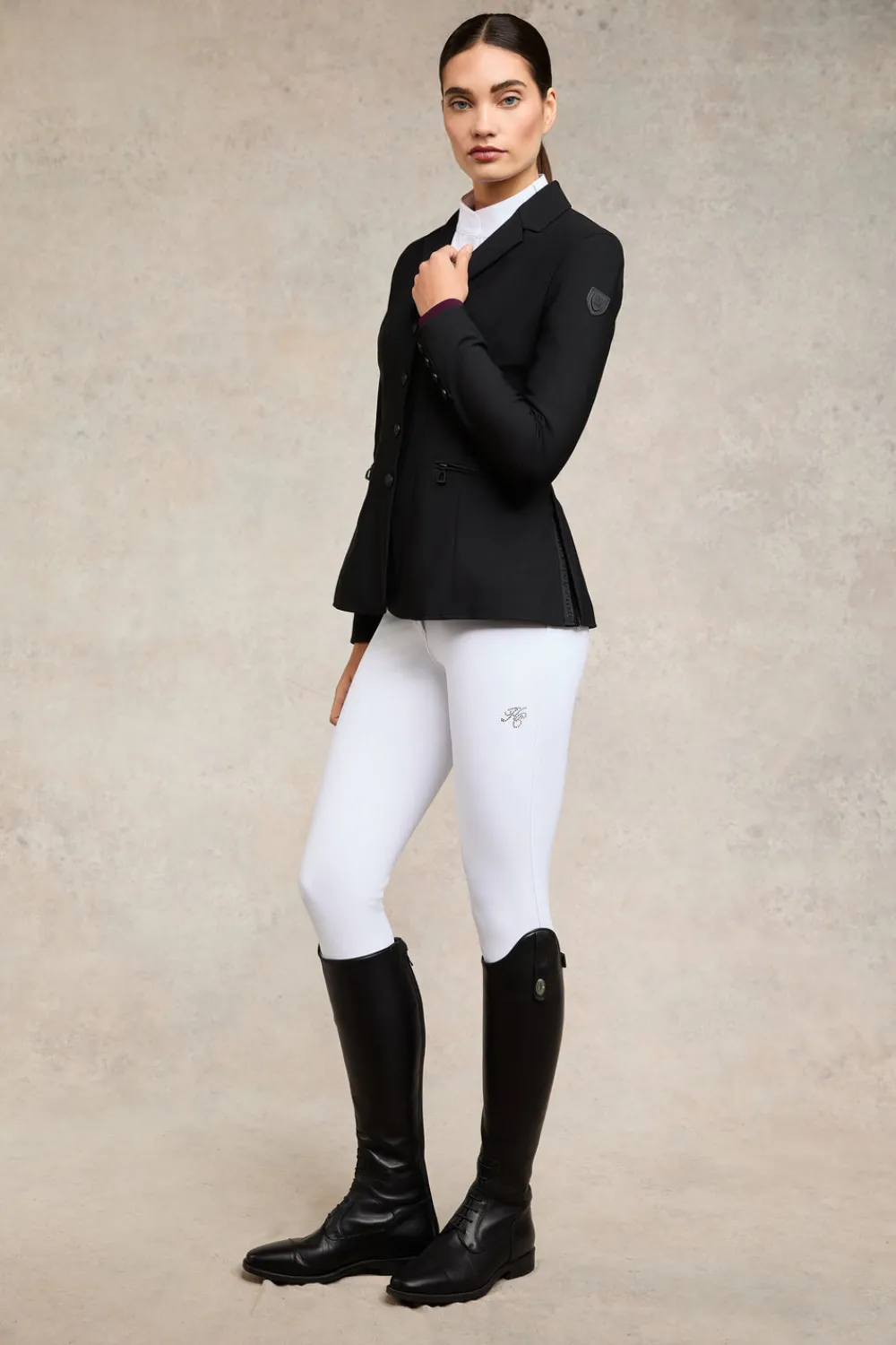 Meticulously tailored for a flattering slim fit, this competition jacket is a must have for all competition riders. Constructed with a breathable mesh lining and showerproof outer shell, we’ve ensured extra stretch for comfort whilst in the saddle. Detailed with zip closure and faux button fastening to keep you secure whilst riding, finished with HC matte black hardware for a sleek look. This jacket adheres to GB Competition Regulations.