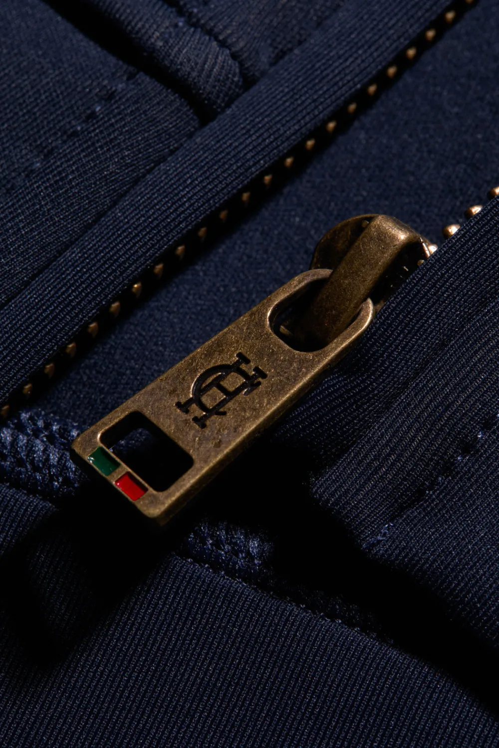 This performance-driven piece offers exceptional comfort and flexibility. The smooth, soft-touch fabric drapes elegantly while maintaining its refined shape. Distinguished by our signature high-build embroidery at the chest, this luxe athletic essential features a sherpa-lined collar for added warmth and sophistication. Practical welt side pockets and a branded zip pull complete this refined design. The relaxed silhouette ensures unrestricted movement while maintaining a polished appearance.