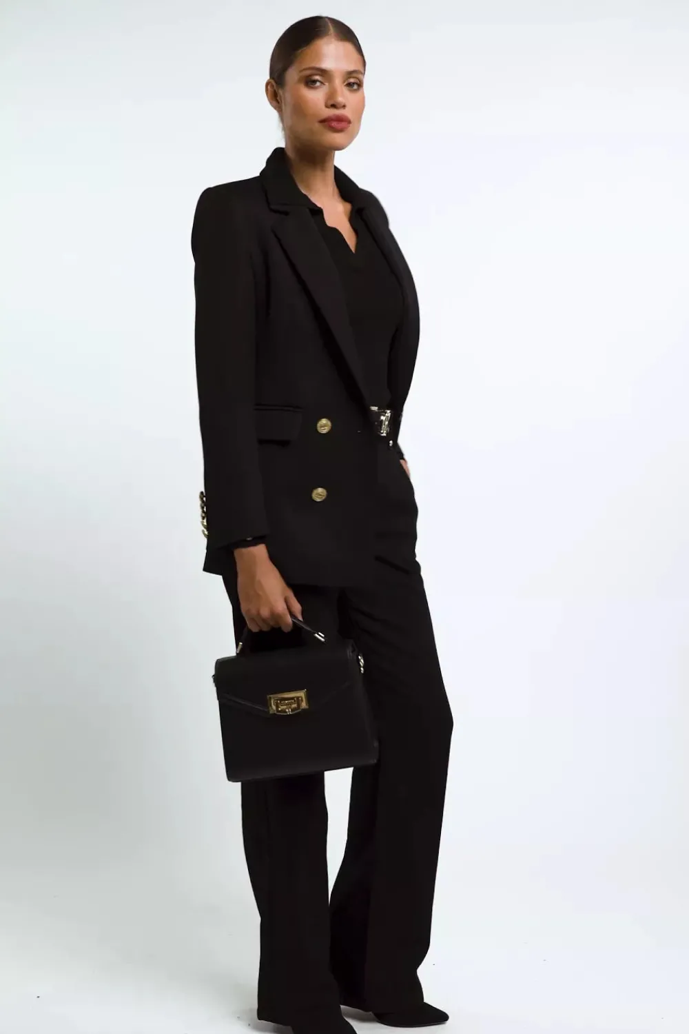 A simple yet classic staple for any wardrobe. This slim fit ribbed knit top features elegant neck and collar detailing, offering a refined touch to your everyday wear. Designed with detachable shoulder pads for a customisable silhouette, it combines versatility with style. Signature metal gold hardware adds a hint of sophistication, making the V-Neck Rib Top an essential piece.