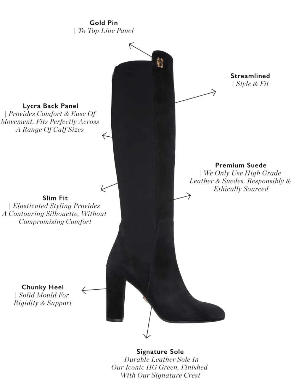 Introducing the high-heeled version of our beloved Albany Boot – a stylish elevation for the season. Crafted from premium cow suede, these boots feature a sleek design complimented by a back panel, ensuring easy wear and comfort. Perfect for adding a touch of sophistication to any outfit, this boot combines elegance with practicality.
