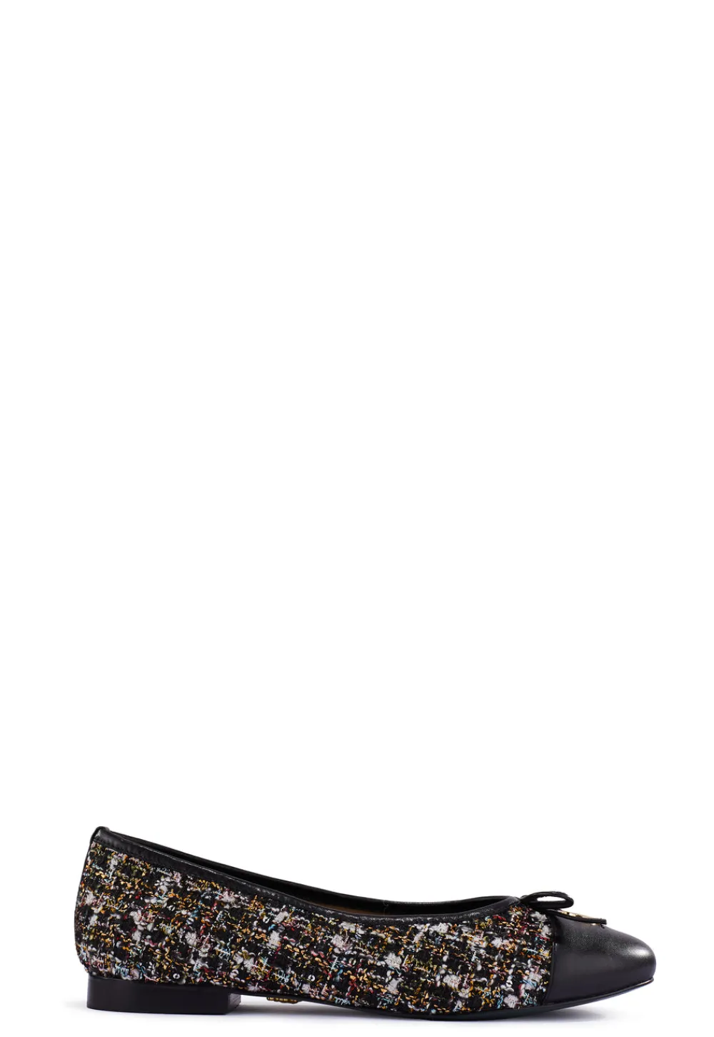 This refined slip-on silhouette showcases a luxurious textile upper adorned with delicate sequins, creating a subtle shimmer with every step. The contrast leather toe cap and binding add a sophisticated touch while ensuring durability. Crafted with comfort in mind, the padded footbed provides all-day wearability, while our signature green outsole offers a distinctive finish. A contemporary interpretation of a timeless classic, perfect for elevating any outfit.