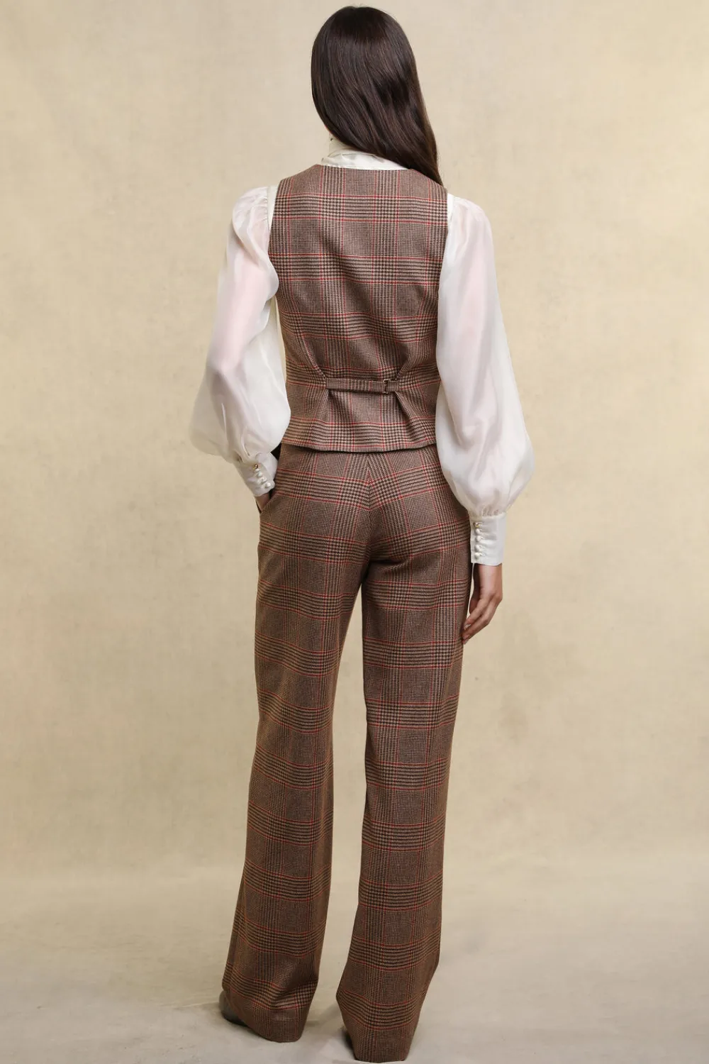 Both classic and refined, this waistcoat offers a slim tailored fit with a skimming v-neckline and elegantly shaped hem. A classic wardrobe staple with traditional suiting details, neat welted pockets, satin lining and a darted front, the back adjuster allows for a personalised fit. Subtly detailed with HC horn buttons. Looks great simply paired with matching trousers, as a layering piece, or as part of a 3 piece suit. Proudly hand cut and made in England using wools woven in the UK.