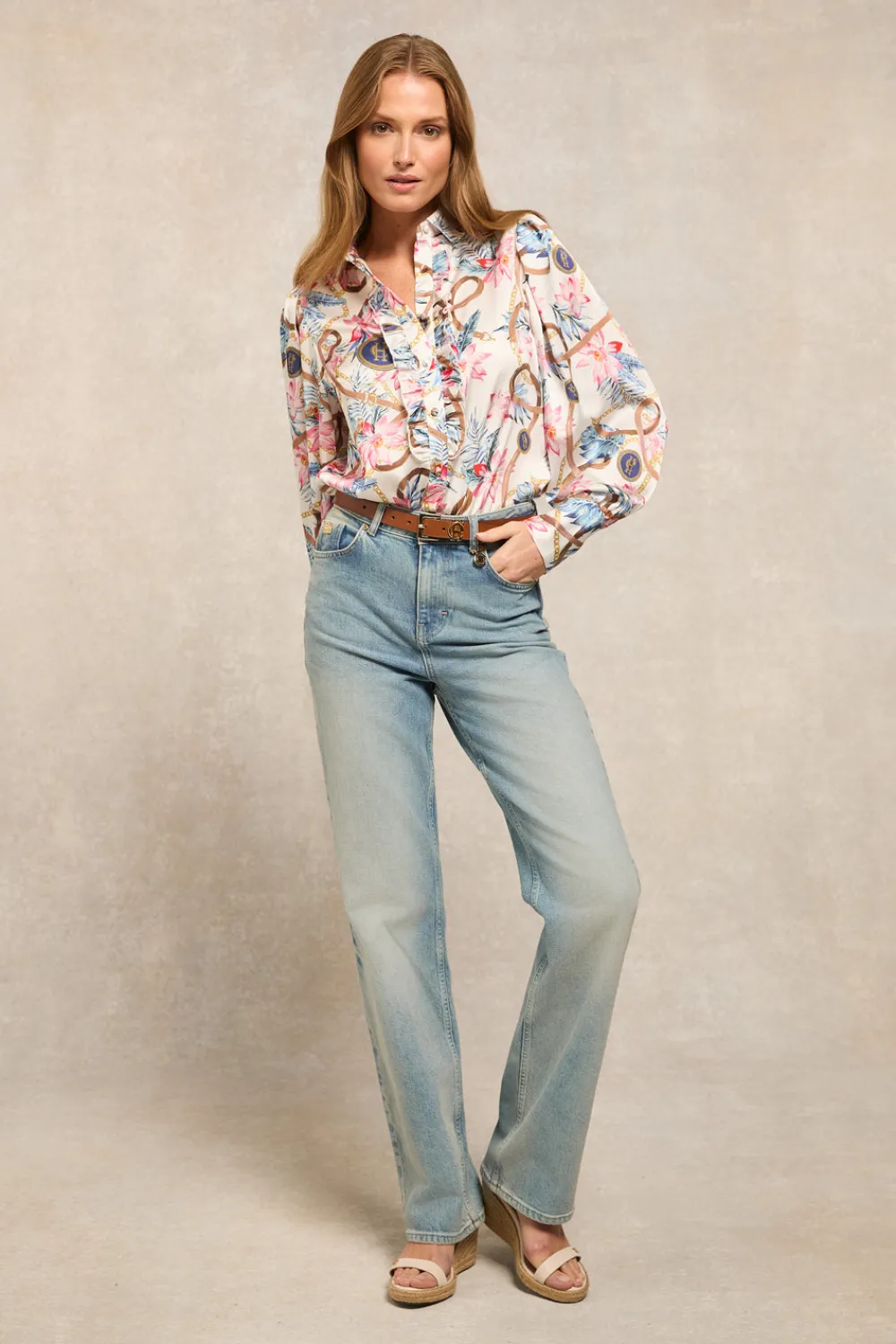 The Isla Ruffle Shirt in Seychelles embodies timeless sophistication. Adorned with delicate ruffles cascading along the placket, this refined piece features graceful three-quarter detailing that creates an elegant silhouette. A masterful blend of classic tailoring and feminine charm, perfect for both refined daywear and elevated evening occasions.