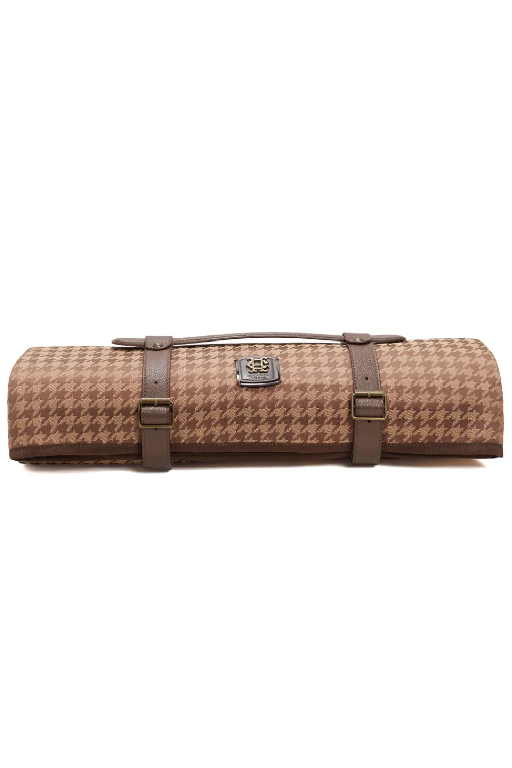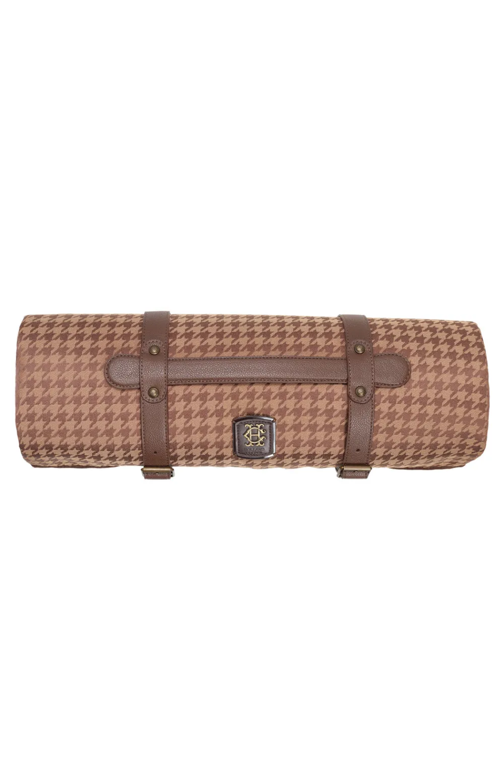 Our first-ever picnic blanket has been developed to be both stylish and practical. Crafted from a hardwearing, houndstooth Jacquard fabric with a waterproof membrane to the underside, the soft polypill lining ensures you can sit comfortably. Finished with faux leather carry straps which have been detailed with our iconic hardware. With an anti-stain finish, this picnic blanket ensures easy care, practicality and style when picnicking this summer.