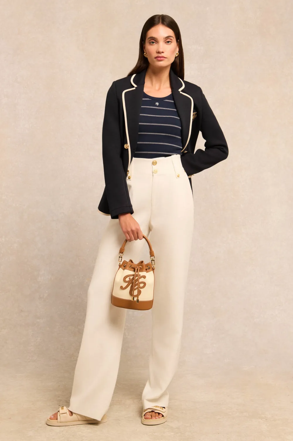This refined piece showcases our signature engineered stripes and is adorned with distinctive HC embroidery at the neckline. Meticulously crafted from premium blend with the perfect stretch, this slim-fitting silhouette offers both elegance and comfort.