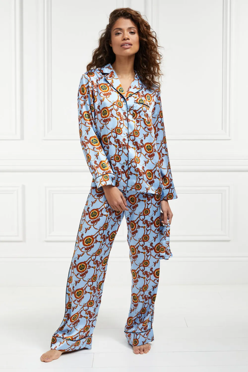 Introducing our Nightwear Collection. Our luxurious new hand drawn Holland Cooper print made up in a timeless style will not only feel indulgent against the skin but also help you have a peaceful slumber too, with all silk’s natural benefits. Made from 100% silk, with a contrast piping to the hem and back pockets.
