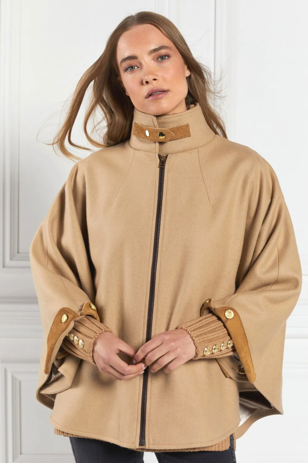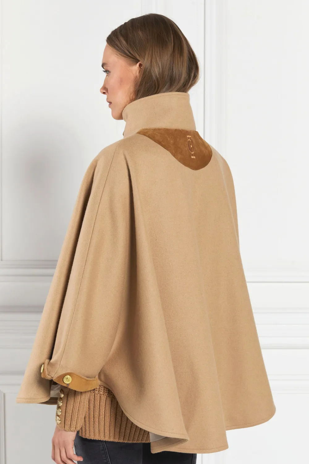 This classic, one size wool Cape is designed and cut for an elegant relaxed silhouette to cleverly suit all sizes. This cape is fully lined and is cut to scoop down at the back for a feminine look and feel.