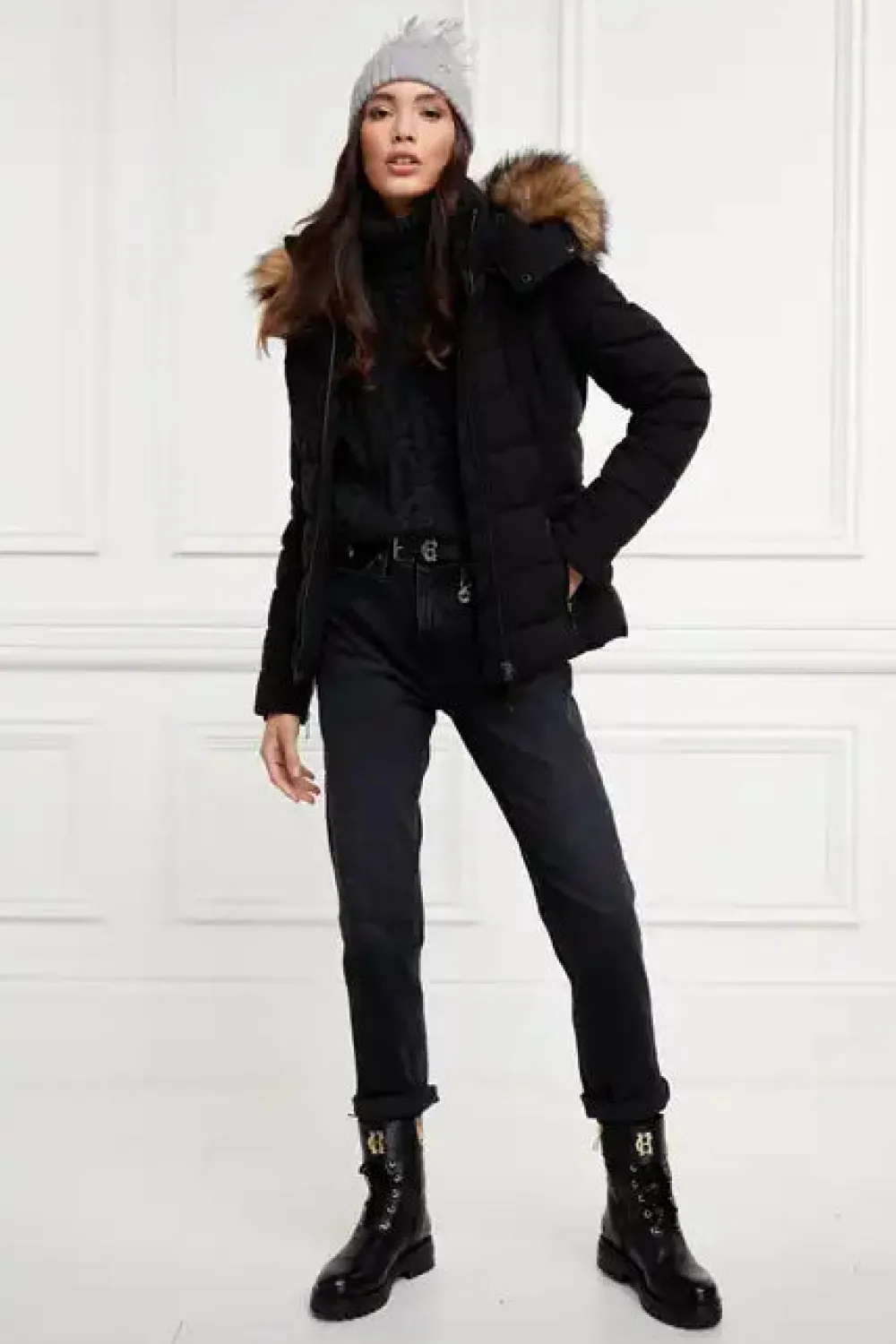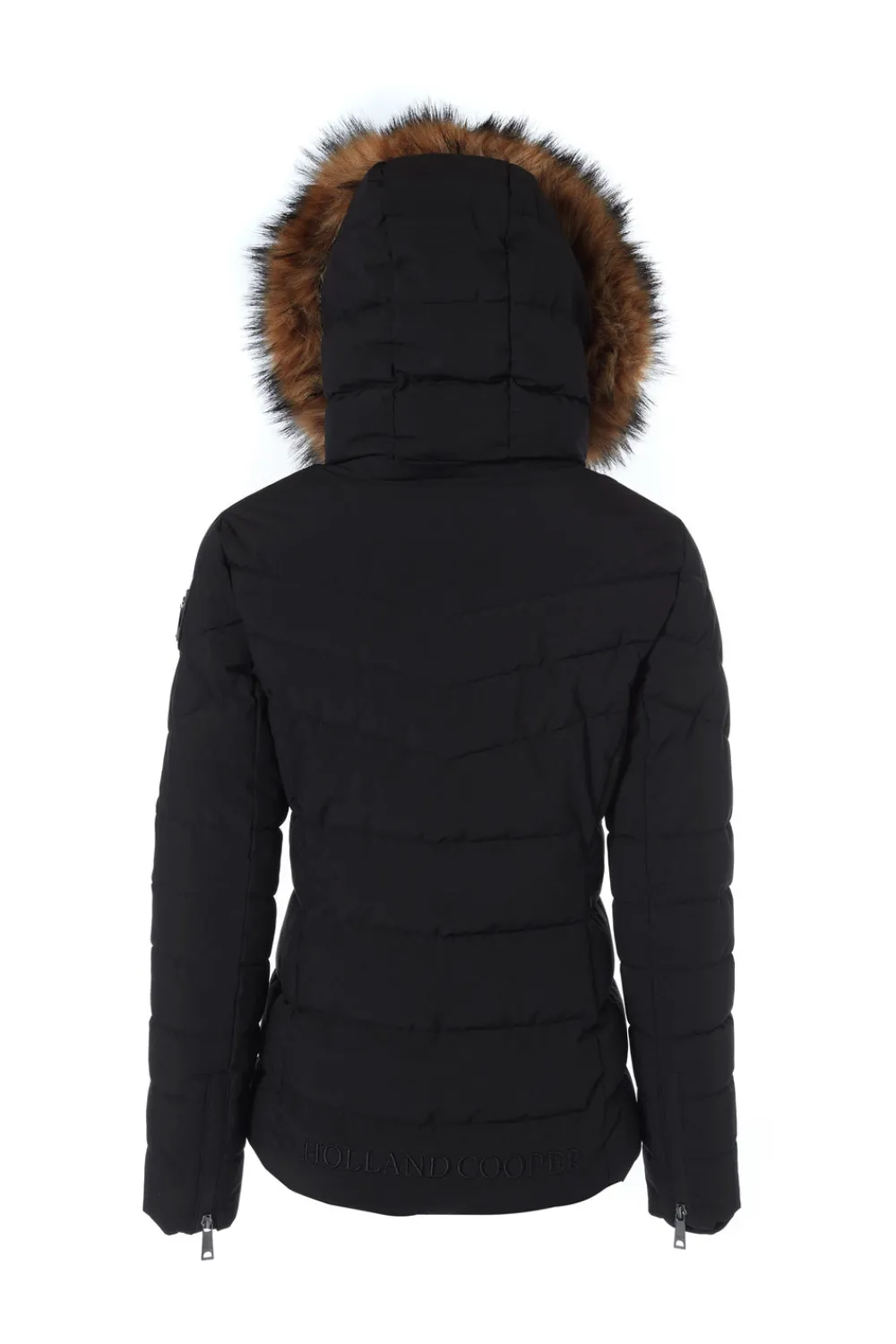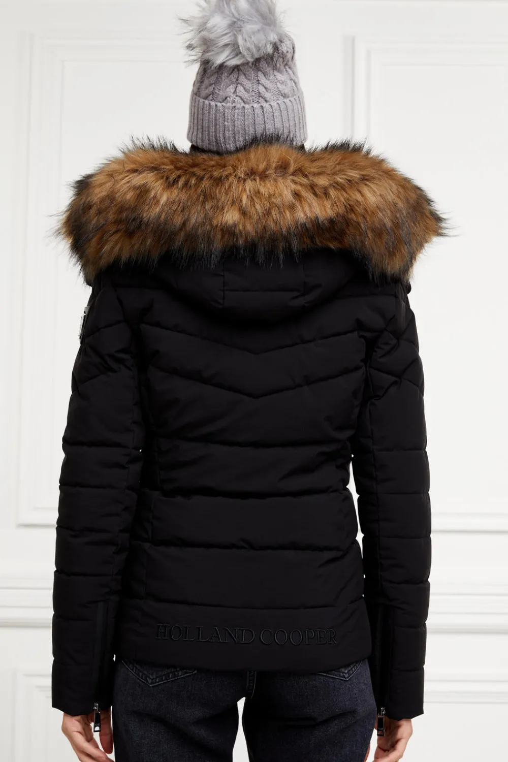 Designed with chevron quilting and neoprene storm cuffs, our Whistler Puffer is both practical and stylish. Curated and filled with an eco Sorona fill, this piece is both insulating and sustainable. With a HC patterned lining and coated exterior zips, this piece has been elegantly detailed with our iconic hardware. Beautifully finished with a detachable luxury faux fur-trimmed hood.